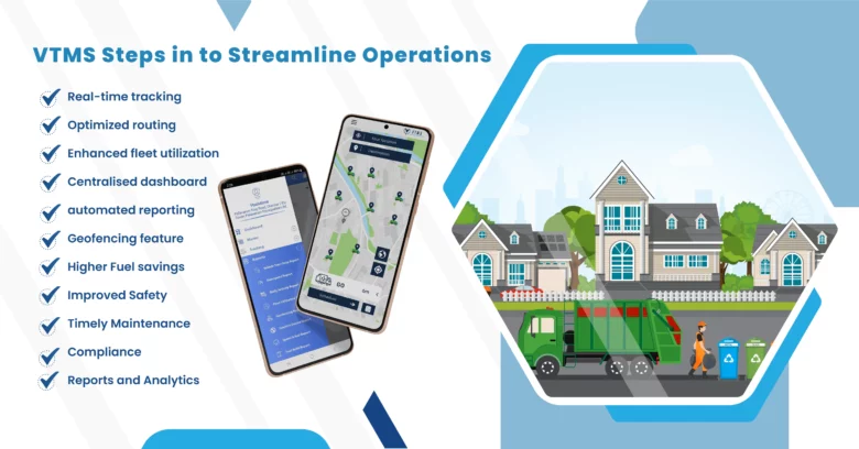 VTMS (Vehicle Tracking and Management Systems) enhances waste management operations by providing real-time visibility of waste collection vehicles. Municipal authorities can monitor vehicle location, speed, and status, enabling better management and coordination of fleet activities.